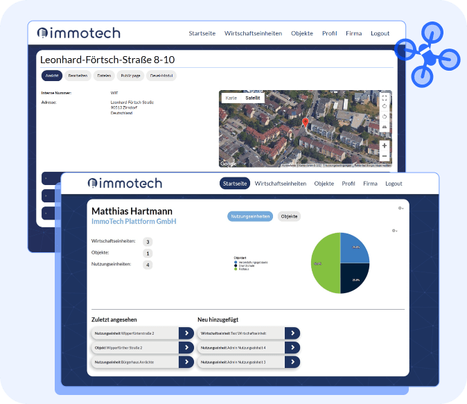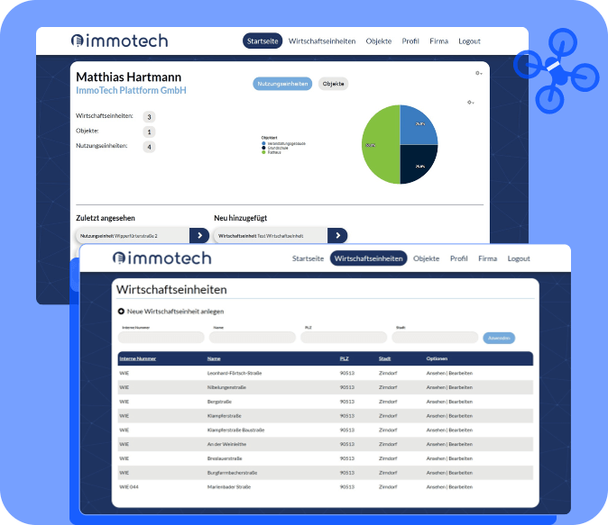Die ImmoTech Plattform GmbH – gegründet von Experten aus der Immobilienwirtschaft und Spezialisten aus anderen Bereichen – bietet eine der innovativsten PropTech Lösungen und ermöglicht schon heute Themen wie die digitale Gebäudeakte sowie semi-automatisiertes Instandhaltungsmanagement.
